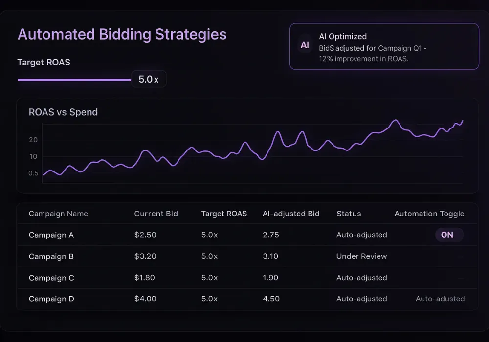Institutionalize precision bidding. Define your target financial outcomes—whether ROAS or CPA—and leverage the system’s Autonomous Bid Orchestrator to execute thousands of micro-adjustments, converting strategic goals into tangible campaign results.