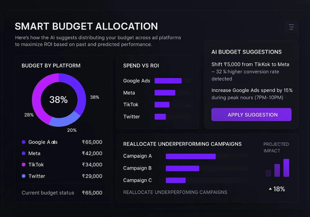 Maximize financial efficiency. The platform functions as a Strategic Investment Allocator, dynamically distributing budget across campaigns and platforms in real-time based on predictive performance models to ensure optimal return on advertising spend (ROAS).
